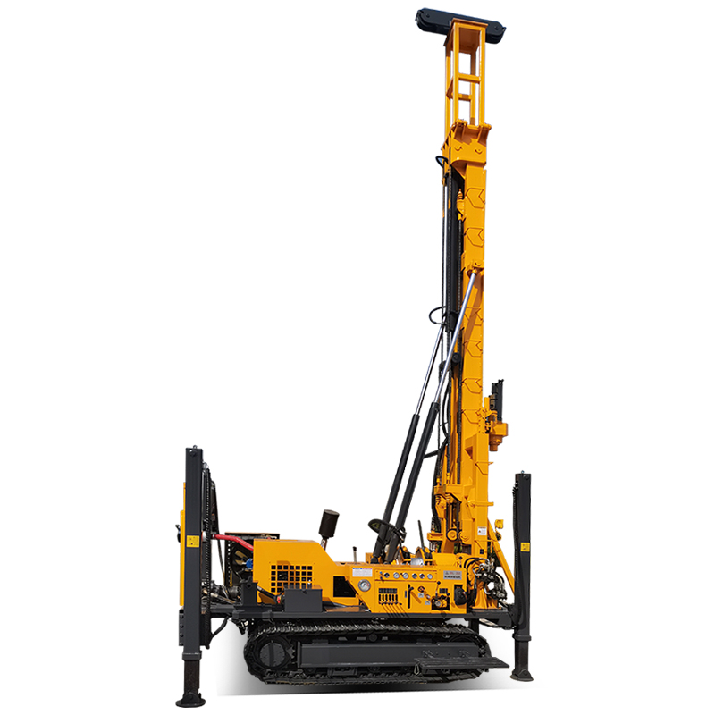 The JDL-350 water and gas dual-purpose mechanical top drive series drilling rig is a water well drilling and chiseling equipment independently developed by the company, which integrates water and gas drilling functions. The drilling rig adopts a hydraulic torque converter automatic gearbox, and the shift lever is sensitive and convenient for switching between forward and reverse directions. The transmission efficiency is twice that of hydraulic transmission, and the power consumption is reduced by 35%, making it more efficient and energy-saving. Solved the difficulties of air DTH hammer drilling in soil layers and the low construction efficiency of rotary drilling machines in hard rock, gravel, and pebble layers.